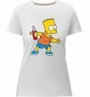 Жіноча преміум-футболка власного виробництва приталеного крою. Виготовлена з якісної тканини (95% бавовна, 5% еластан) — щільна, м'яка та приємна до тіла. Принт Барт з фарбою можна розмістити на грудях, спині або рукаві.