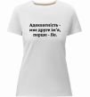 Жіноча преміум-футболка власного виробництва приталеного крою. Виготовлена з якісної тканини (95% бавовна, 5% еластан) — щільна, м'яка та приємна до тіла. Принт Адекватність моє друге ім'я можна розмістити на грудях, спині або рукаві.