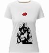 Жіноча преміум-футболка власного виробництва приталеного крою. Виготовлена з якісної тканини (95% бавовна, 5% еластан) — щільна, м'яка та приємна до тіла. Принт Akatsuki Наруто можна розмістити на грудях, спині або рукаві.