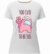 Жіноча преміум-футболка власного виробництва приталеного крою. Виготовлена з якісної тканини (95% бавовна, 5% еластан) — щільна, м'яка та приємна до тіла. Принт Among us too cute можна розмістити на грудях, спині або рукаві.