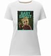 Жіноча преміум-футболка власного виробництва приталеного крою. Виготовлена з якісної тканини (95% бавовна, 5% еластан) — щільна, м'яка та приємна до тіла. Принт Baby groot можна розмістити на грудях, спині або рукаві.