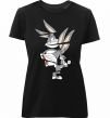 Жіноча преміум-футболка власного виробництва приталеного крою. Виготовлена з якісної тканини (95% бавовна, 5% еластан) — щільна, м'яка та приємна до тіла. Принт Багс Банні можна розмістити на грудях, спині або рукаві.