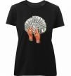 Жіноча преміум-футболка власного виробництва приталеного крою. Виготовлена з якісної тканини (95% бавовна, 5% еластан) — щільна, м'яка та приємна до тіла. Принт Бакси в жіночих руках можна розмістити на грудях, спині або рукаві.