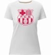 Жіноча преміум-футболка власного виробництва приталеного крою. Виготовлена з якісної тканини (95% бавовна, 5% еластан) — щільна, м'яка та приємна до тіла. Принт BARCELONA можна розмістити на грудях, спині або рукаві.