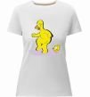 Жіноча преміум-футболка власного виробництва приталеного крою. Виготовлена з якісної тканини (95% бавовна, 5% еластан) — щільна, м'яка та приємна до тіла. Принт Гомер і пес можна розмістити на грудях, спині або рукаві.