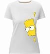 Жіноча преміум-футболка власного виробництва приталеного крою. Виготовлена з якісної тканини (95% бавовна, 5% еластан) — щільна, м'яка та приємна до тіла. Принт BART IS LOOKING можна розмістити на грудях, спині або рукаві.