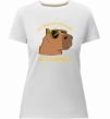 Жіноча преміум-футболка власного виробництва приталеного крою. Виготовлена з якісної тканини (95% бавовна, 5% еластан) — щільна, м'яка та приємна до тіла. Принт Be a capybara можна розмістити на грудях, спині або рукаві.