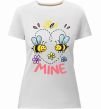 Жіноча преміум-футболка власного виробництва приталеного крою. Виготовлена з якісної тканини (95% бавовна, 5% еластан) — щільна, м'яка та приємна до тіла. Принт Bee mine можна розмістити на грудях, спині або рукаві.