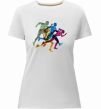 Жіноча преміум-футболка власного виробництва приталеного крою. Виготовлена з якісної тканини (95% бавовна, 5% еластан) — щільна, м'яка та приємна до тіла. Принт Бігуни можна розмістити на грудях, спині або рукаві.