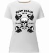 Жіноча преміум-футболка власного виробництва приталеного крою. Виготовлена з якісної тканини (95% бавовна, 5% еластан) — щільна, м'яка та приємна до тіла. Принт Best coach ever skull можна розмістити на грудях, спині або рукаві.