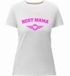 Жіноча преміум-футболка власного виробництва приталеного крою. Виготовлена з якісної тканини (95% бавовна, 5% еластан) — щільна, м'яка та приємна до тіла. Принт BEST MAMA с сердечком можна розмістити на грудях, спині або рукаві.