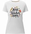 Жіноча преміум-футболка власного виробництва приталеного крою. Виготовлена з якісної тканини (95% бавовна, 5% еластан) — щільна, м'яка та приємна до тіла. Принт Best teacher ever зірки можна розмістити на грудях, спині або рукаві.