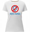Жіноча преміум-футболка власного виробництва приталеного крою. Виготовлена з якісної тканини (95% бавовна, 5% еластан) — щільна, м'яка та приємна до тіла. Принт Без баб можна розмістити на грудях, спині або рукаві.