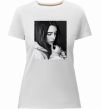 Жіноча преміум-футболка власного виробництва приталеного крою. Виготовлена з якісної тканини (95% бавовна, 5% еластан) — щільна, м'яка та приємна до тіла. Принт Billie Eilish bw можна розмістити на грудях, спині або рукаві.