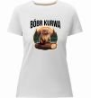 Жіноча преміум-футболка власного виробництва приталеного крою. Виготовлена з якісної тканини (95% бавовна, 5% еластан) — щільна, м'яка та приємна до тіла. Принт Bobr kurwa можна розмістити на грудях, спині або рукаві.