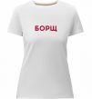 Жіноча преміум-футболка власного виробництва приталеного крою. Виготовлена з якісної тканини (95% бавовна, 5% еластан) — щільна, м'яка та приємна до тіла. Принт Борщ можна розмістити на грудях, спині або рукаві.