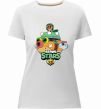 Жіноча преміум-футболка власного виробництва приталеного крою. Виготовлена з якісної тканини (95% бавовна, 5% еластан) — щільна, м'яка та приємна до тіла. Принт Brawl Stars Hank можна розмістити на грудях, спині або рукаві.