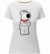 Жіноча преміум-футболка власного виробництва приталеного крою. Виготовлена з якісної тканини (95% бавовна, 5% еластан) — щільна, м'яка та приємна до тіла. Принт Брайан пес можна розмістити на грудях, спині або рукаві.