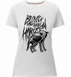 Жіноча преміум-футболка власного виробництва приталеного крою. Виготовлена з якісної тканини (95% бавовна, 5% еластан) — щільна, м'яка та приємна до тіла. Принт Bring Me the Horizon Wolf bones можна розмістити на грудях, спині або рукаві.