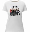 Жіноча преміум-футболка власного виробництва приталеного крою. Виготовлена з якісної тканини (95% бавовна, 5% еластан) — щільна, м'яка та приємна до тіла. Принт BTS фото та назва можна розмістити на грудях, спині або рукаві.