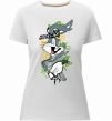 Жіноча преміум-футболка власного виробництва приталеного крою. Виготовлена з якісної тканини (95% бавовна, 5% еластан) — щільна, м'яка та приємна до тіла. Принт Bugs Bunny графіті можна розмістити на грудях, спині або рукаві.