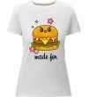 Жіноча преміум-футболка власного виробництва приталеного крою. Виготовлена з якісної тканини (95% бавовна, 5% еластан) — щільна, м'яка та приємна до тіла. Принт Бургер Made for можна розмістити на грудях, спині або рукаві.