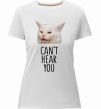 Жіноча преміум-футболка власного виробництва приталеного крою. Виготовлена з якісної тканини (95% бавовна, 5% еластан) — щільна, м'яка та приємна до тіла. Принт Can`t hear you cat можна розмістити на грудях, спині або рукаві.