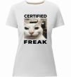 Жіноча преміум-футболка власного виробництва приталеного крою. Виготовлена з якісної тканини (95% бавовна, 5% еластан) — щільна, м'яка та приємна до тіла. Принт Certified freak можна розмістити на грудях, спині або рукаві.