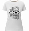Жіноча преміум-футболка власного виробництва приталеного крою. Виготовлена з якісної тканини (95% бавовна, 5% еластан) — щільна, м'яка та приємна до тіла. Принт COO можна розмістити на грудях, спині або рукаві.