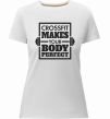 Жіноча преміум-футболка власного виробництва приталеного крою. Виготовлена з якісної тканини (95% бавовна, 5% еластан) — щільна, м'яка та приємна до тіла. Принт Crossfit makes your body perfect можна розмістити на грудях, спині або рукаві.