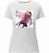Жіноча преміум-футболка власного виробництва приталеного крою. Виготовлена з якісної тканини (95% бавовна, 5% еластан) — щільна, м'яка та приємна до тіла. Принт Darling in the franxx можна розмістити на грудях, спині або рукаві.