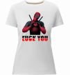 Жіноча преміум-футболка власного виробництва приталеного крою. Виготовлена з якісної тканини (95% бавовна, 5% еластан) — щільна, м'яка та приємна до тіла. Принт Deadpool f*ck you love you можна розмістити на грудях, спині або рукаві.