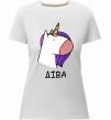 Жіноча преміум-футболка власного виробництва приталеного крою. Виготовлена з якісної тканини (95% бавовна, 5% еластан) — щільна, м'яка та приємна до тіла. Принт Діва єдиноріг можна розмістити на грудях, спині або рукаві.