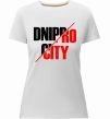 Жіноча преміум-футболка власного виробництва приталеного крою. Виготовлена з якісної тканини (95% бавовна, 5% еластан) — щільна, м'яка та приємна до тіла. Принт Dnipro city можна розмістити на грудях, спині або рукаві.