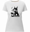 Жіноча преміум-футболка власного виробництва приталеного крою. Виготовлена з якісної тканини (95% бавовна, 5% еластан) — щільна, м'яка та приємна до тіла. Принт Doberman with gun можна розмістити на грудях, спині або рукаві.