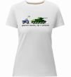 Жіноча преміум-футболка власного виробництва приталеного крою. Виготовлена з якісної тканини (95% бавовна, 5% еластан) — щільна, м'яка та приємна до тіла. Принт Доброго вечора ми з України Трактор тягне танк можна розмістити на грудях, спині або рукаві.