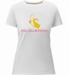 Жіноча преміум-футболка власного виробництва приталеного крою. Виготовлена з якісної тканини (95% бавовна, 5% еластан) — щільна, м'яка та приємна до тіла. Принт Dolce banana можна розмістити на грудях, спині або рукаві.