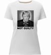 Жіноча преміум-футболка власного виробництва приталеного крою. Виготовлена з якісної тканини (95% бавовна, 5% еластан) — щільна, м'яка та приємна до тіла. Принт Donald Trump Not guilty можна розмістити на грудях, спині або рукаві.