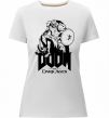 Жіноча преміум-футболка власного виробництва приталеного крою. Виготовлена з якісної тканини (95% бавовна, 5% еластан) — щільна, м'яка та приємна до тіла. Принт Doom dark ages можна розмістити на грудях, спині або рукаві.