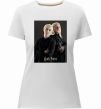 Жіноча преміум-футболка власного виробництва приталеного крою. Виготовлена з якісної тканини (95% бавовна, 5% еластан) — щільна, м'яка та приємна до тіла. Принт Драко Малфой з батьком можна розмістити на грудях, спині або рукаві.