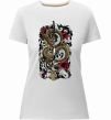 Жіноча преміум-футболка власного виробництва приталеного крою. Виготовлена з якісної тканини (95% бавовна, 5% еластан) — щільна, м'яка та приємна до тіла. Принт Дракон катана можна розмістити на грудях, спині або рукаві.
