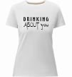 Жіноча преміум-футболка власного виробництва приталеного крою. Виготовлена з якісної тканини (95% бавовна, 5% еластан) — щільна, м'яка та приємна до тіла. Принт Drinking about you можна розмістити на грудях, спині або рукаві.