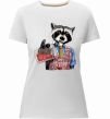 Жіноча преміум-футболка власного виробництва приталеного крою. Виготовлена з якісної тканини (95% бавовна, 5% еластан) — щільна, м'яка та приємна до тіла. Принт Єнот бармен можна розмістити на грудях, спині або рукаві.