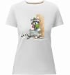 Жіноча преміум-футболка власного виробництва приталеного крою. Виготовлена з якісної тканини (95% бавовна, 5% еластан) — щільна, м'яка та приємна до тіла. Принт Єнот їсть можна розмістити на грудях, спині або рукаві.