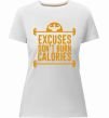 Жіноча преміум-футболка власного виробництва приталеного крою. Виготовлена з якісної тканини (95% бавовна, 5% еластан) — щільна, м'яка та приємна до тіла. Принт Exuses don't burn calories можна розмістити на грудях, спині або рукаві.