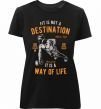 Жіноча преміум-футболка власного виробництва приталеного крою. Виготовлена з якісної тканини (95% бавовна, 5% еластан) — щільна, м'яка та приємна до тіла. Принт Fit Is Not A Destination можна розмістити на грудях, спині або рукаві.