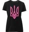 Жіноча преміум-футболка власного виробництва приталеного крою. Виготовлена з якісної тканини (95% бавовна, 5% еластан) — щільна, м'яка та приємна до тіла. Принт Герб рожевий можна розмістити на грудях, спині або рукаві.