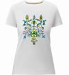 Жіноча преміум-футболка власного виробництва приталеного крою. Виготовлена з якісної тканини (95% бавовна, 5% еластан) — щільна, м'яка та приємна до тіла. Принт Герб мрія про перемогу можна розмістити на грудях, спині або рукаві.