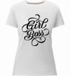 Жіноча преміум-футболка власного виробництва приталеного крою. Виготовлена з якісної тканини (95% бавовна, 5% еластан) — щільна, м'яка та приємна до тіла. Принт Girl boss можна розмістити на грудях, спині або рукаві.