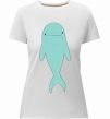 Жіноча преміум-футболка власного виробництва приталеного крою. Виготовлена з якісної тканини (95% бавовна, 5% еластан) — щільна, м'яка та приємна до тіла. Принт Блакитний дельфін можна розмістити на грудях, спині або рукаві.